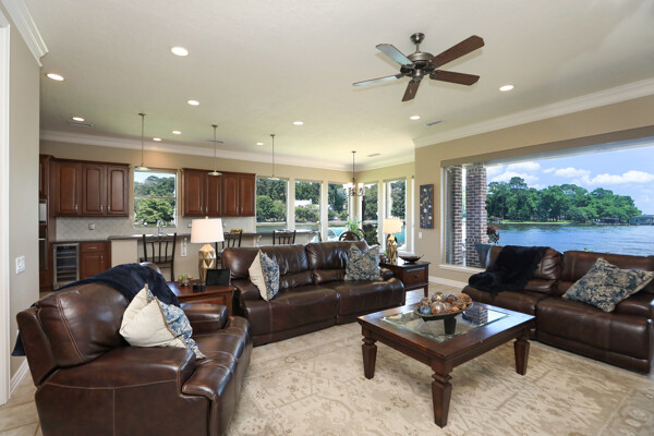 Welcome to a world of luxurious living at this captivating ONE STORY LAKE HOME. Located in a GATED community on a cul-de-sac WATERFRONT LOT, Impeccably designed and maintained, this property offers features and amenities that will exceed expectations. With 4 side brick construction, custom stonework, and a three-car garage, the quality is exceptional. The OPEN CONCEPT kitchen showcases Kent Moore cabinets and GAS cooking. Enjoy the breathtaking lake view, a sheltered back porch, and 44 yards of waterfront with boat and jet ski lifts. Modern amenities include a central vacuum, 10 foot ceilings, beverage cooler, fireplace, & sprinkler system. Stay connected with high-speed internet and enjoy home automation Embrace tranquility in the secluded cove, witness stunning sunrises, and relax in the fenced backyard. The garage is wired for a portable gas generator. Sought after MONTGOMERY ISD, NO FLOODING, LOW TAX RATE! POA MAINTAINS YOUR FRONT YARD! Close proximity to shopping and highway 105.