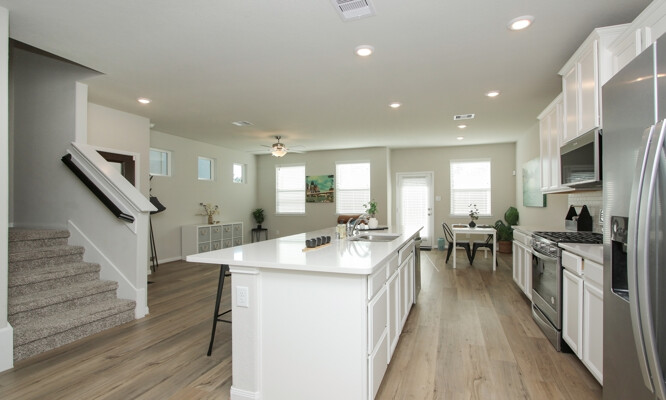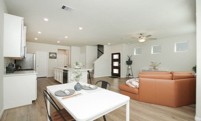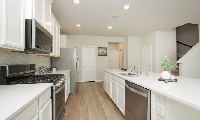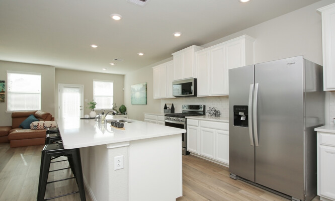 Modern home constructed by Meritage Homes, a national builder and industry leader in energy efficiency, with a legacy of excellence spanning over 3 decades! Experience the Meritage distinction with chic design and superior construction in the highly sought-after gated community of Oaks of Lawndale in EADO. The expansive island features a breakfast bar, quartz countertops, 5-burner gas cooktop, convection oven, 42-inch cabinets, sleek backsplash, & walk-in pantry. The open-concept living & dining is perfect for entertaining. The floor plan includes ample storage & closet space, complemented by a charming MUD area. Low E windows. Spacious primary suite featuring double sinks, large shower, & walk-in closet. Blinds throughout. Tankless water heater. Spray foam in attic! Stone elevation. Near Downtown, UH, Med Center, stadiums, light rail, vibrant restaurants, & nightlife. No flooding. Low tax rate. HOA fee covers dog park, pavilion, gate, playground, front yard maintenance, water & trash.