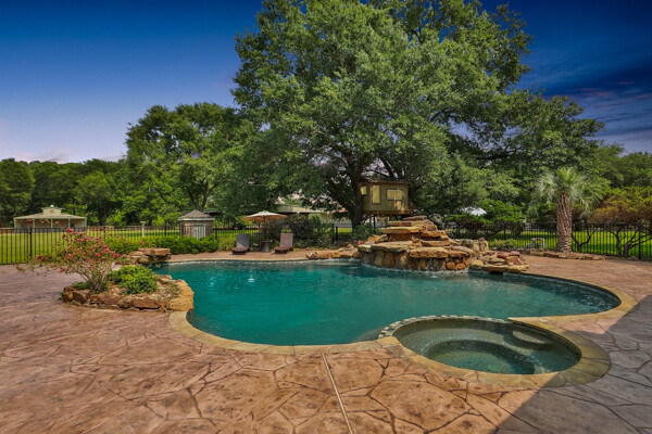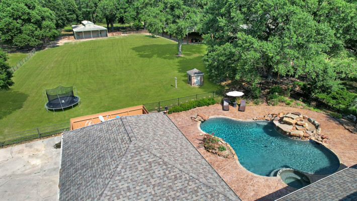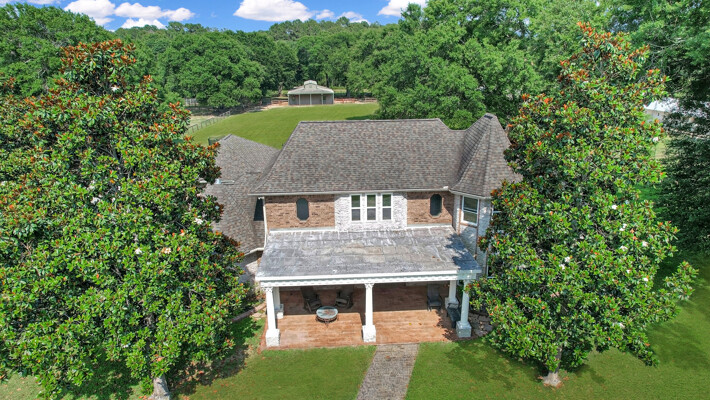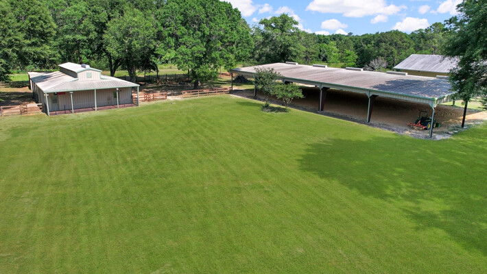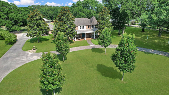 RARE! -/+5 Acres Private gated pool home on park-like acreage with a covered lighted riding arena, 5 stall barn & attached living quarters. Enjoy huge living in this 5 bedroom home! An alluring front porch to enjoy beautiful sunsets, circular drive, double-gated property. 2 bedrooms down or master down with study. Tile & wood floors thru-out. White cabinets in kitchen with stainless steel appliances, separate ice maker, trash compactor, island gas cooktop, corner sink, breakfast bar, built-in refrigerator, convection microwave & more. Custom-built mantel with gas fireplace in large family room! Double paned windows thruout. Over-sized laundry room. Grandiose formal dining room is open to the kitchen & perfect for entertaining. Private master suite with sitting area. Master bath with his & her closets, his & her vanities & separate tub/shower. 3 large bedrooms upstairs, two full baths, a great-sized game room with a wet bar. Wrought iron staircase with exquisite wood stairs. Pool & spa with rock water fall. Covered back patio!