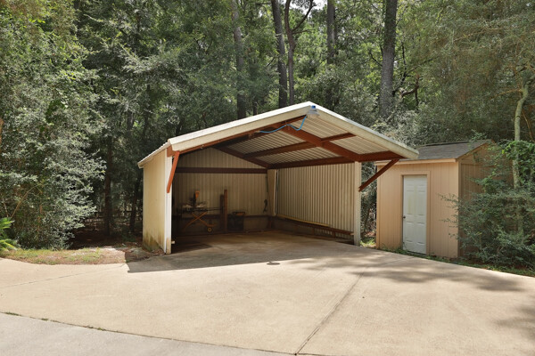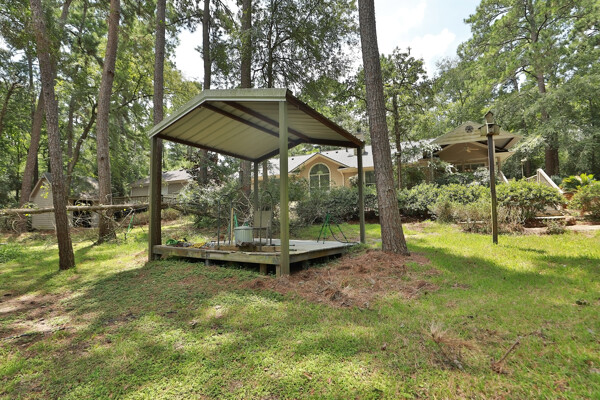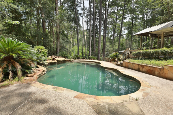 Welcome to your private oasis! This charming one-story home sits on a sprawling 1.97 +/- acre lot with a gated entry. The property boasts an attached 2-car garage and a detached 2-car garage, perfect for a workshop or potential guest quarters. Additional features include a 1-car carport, tractor shed, WELL house, pavilion, POOL, storage shed, and irrigation system. A GENERATOR offers peace of mind during any power outages. Inside, you'll find a beautifully updated open-concept living space with granite countertops and no carpet throughout, making maintenance a breeze. The home features ample storage both inside and outside. Enjoy your mornings and evenings on the covered front and back porches, taking in the serene views and abundant wildlife with no back neighbors. The low tax rate, no MUD, and low HOA fees make this property even more desirable. This is country living at its finest, with all the modern amenities you need. Magnolia ISD - NO FLOODING of home per this original owner.