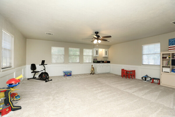 This stately home has so much to offer! It has been beautifully maintained & is ready for the next owner to appreciate it. It is spacious w/large living areas, downstairs primary bedroom & 3 spacious secondary bedrooms. Two of the upstairs bedrooms have direct access to Hollywood style bathroom. All bedrooms have walk-in closets. Game room is extra-large & would be perfect for a kids’ playroom, homeschool space, game of pool, or work-from-home area. Family room has a tall ceiling w/large windows to let in natural light & to provide views of backyard. Backyard space is complete w/playground equipment that will remain with the home. Updated fence. Recent updates include carpet (2021), roof (2015), water heater (2019), kitchen appliances (2019), Home A/C (2017), A/C compressor (2023), Game room A/C (2017). Exterior paint 2023. Horizontal pipes in attic & electrical panel box replaced. One block walk to the neighborhood pool, tennis courts, pickleball courts & playground.