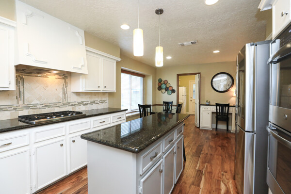 Beautifully updated home on lovely cul-de-sac street! This spacious home has the primary bedroom downstairs. The large game room is upstairs, along with 3 spacious bedrooms, 1 full bathroom and 1 half bath. Beautiful Acacia wood flooring downstairs. The primary bath has been remodeled with large walk-in shower. Great patio space & fountain in the back yard. Mature trees & landscaping in place with sprinklers front & back. Updates include AC replaced 2019; plumbing pipes replaced with PEX; panel box replaced; double-paned windows installed 2017; tankless water heater. Kitchen updates include double-ovens 2021, 5-burner gas cooktop, back splash, granite counter tops & under-cabinet lighting & electrical outlets. Dishwasher replaced 2014. The exterior has been updated with Hardi Siding. Convenient to I-45, Grand Parkway, The Woodlands, & the Hardy Toll Rd. Klein ISD.