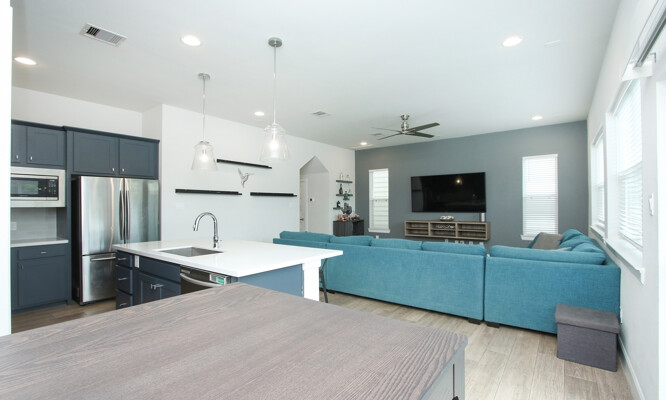 Stunning Two-Story Showcase! Terrific location with convenient access to downtown Houston. The East River Yards development is part of the rapidly expanding East Downtown area. This gated community features recently built contemporary two-story homes with private backyards and two car garages. This home features a terrific floorplan with 10 foot ceilings, large open living room, game room, primary bedroom with ensuite bath and walk-in closet, two secondary bedrooms and private backyard with large patio. Gourmet kitchen has 42” cabinets, gas cooking, quartz countertops, center island, breakfast bar and pantry. Incredible upgrades and fixtures: smart home system, ceiling fans, tankless water heater, radiant barrier, sound wiring, sprinkler system, secured outside storage for delivery services and so much more. Call today to schedule a private showing.